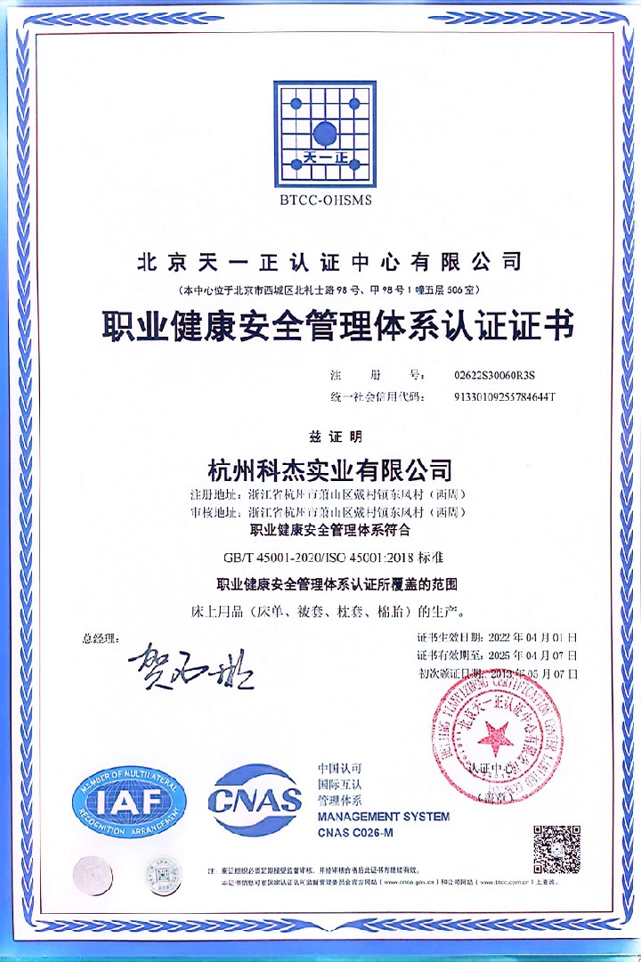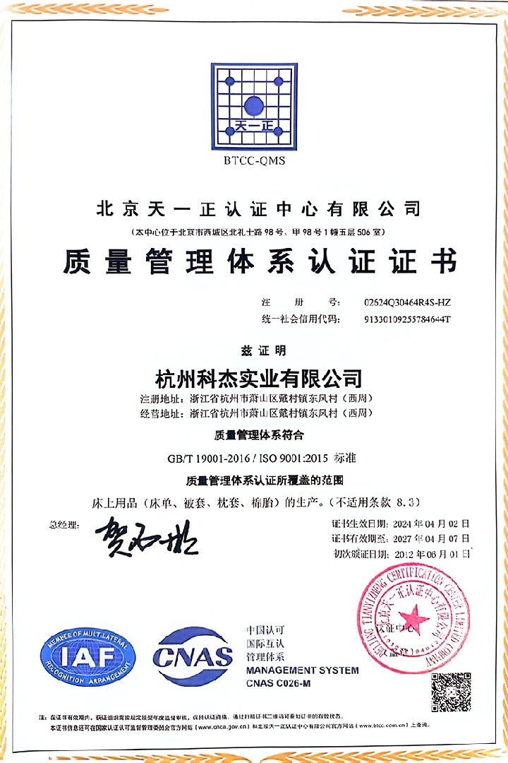杭州科杰实业有限公司注册于1997年10月8日,注册资金1080万元,是一家现代化生产学生床上用品的厂家。